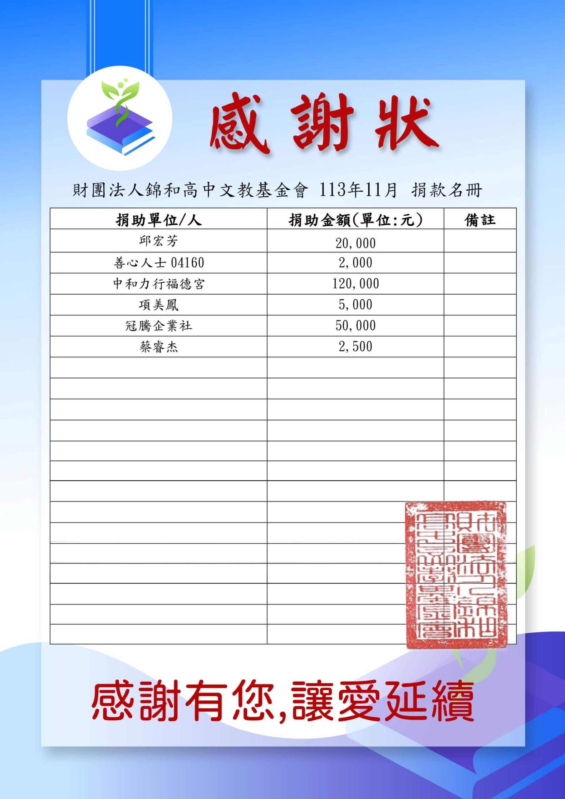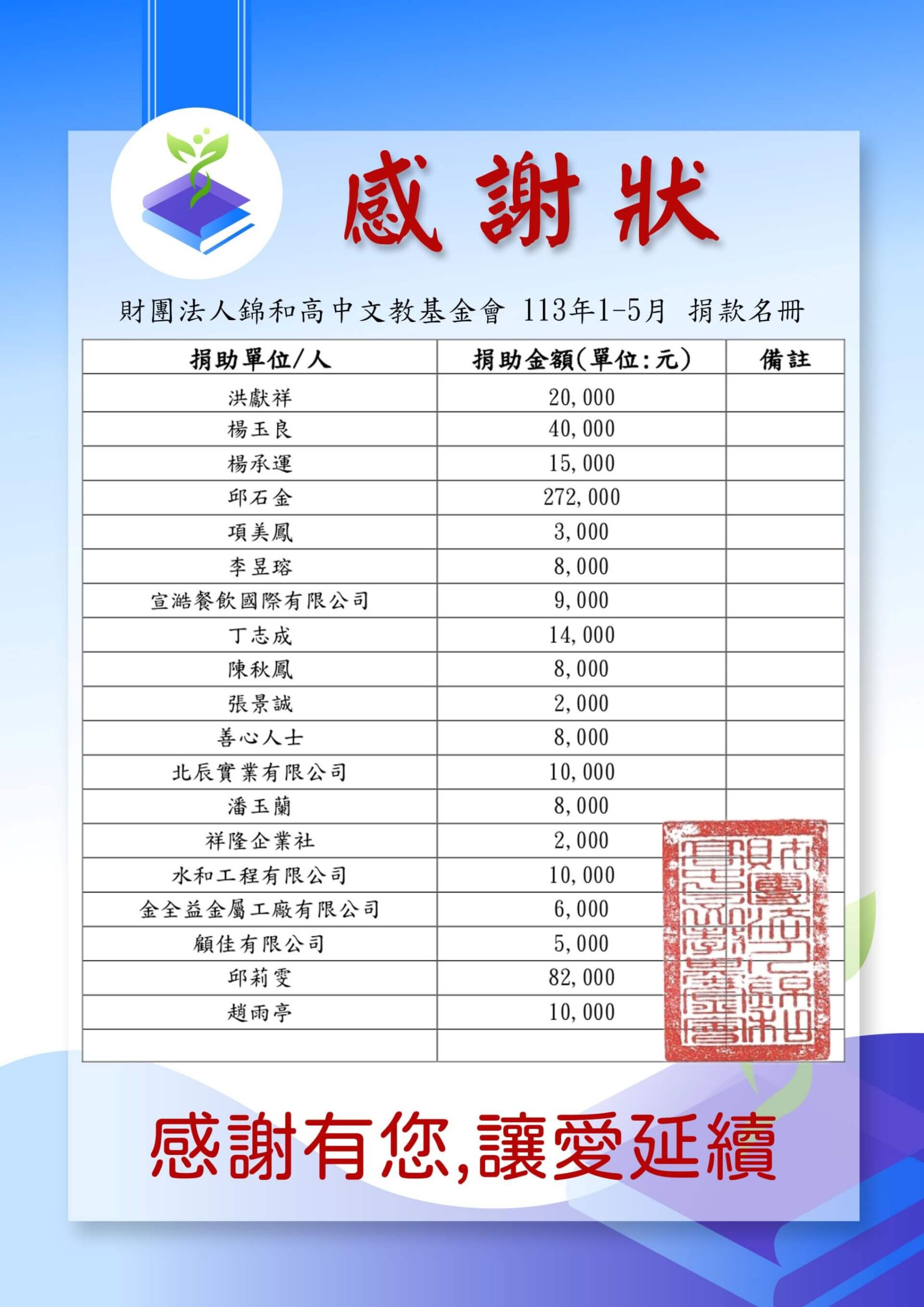 113-1-5月捐贈捐款名冊