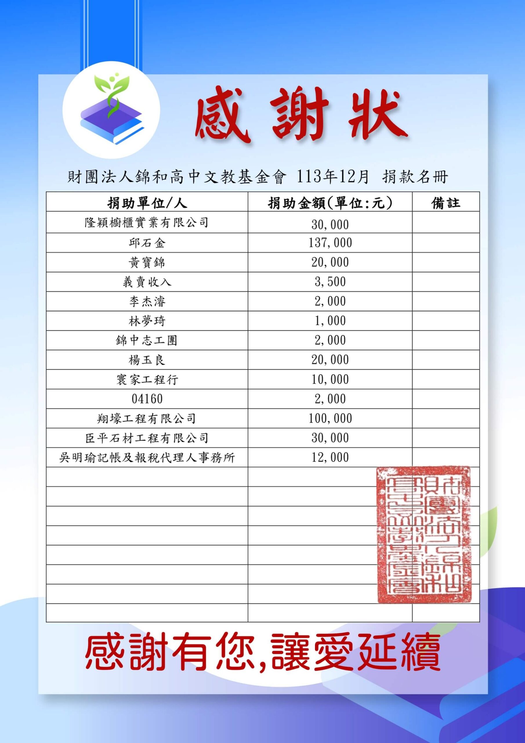 114-12月捐贈捐款名冊