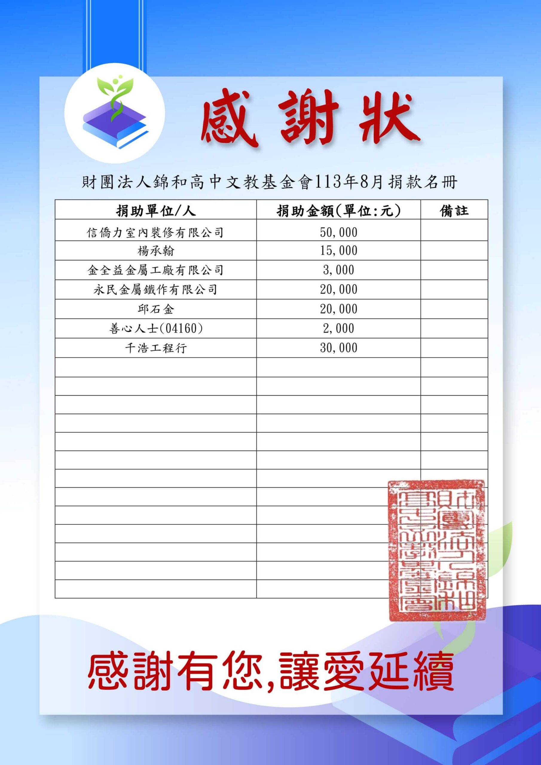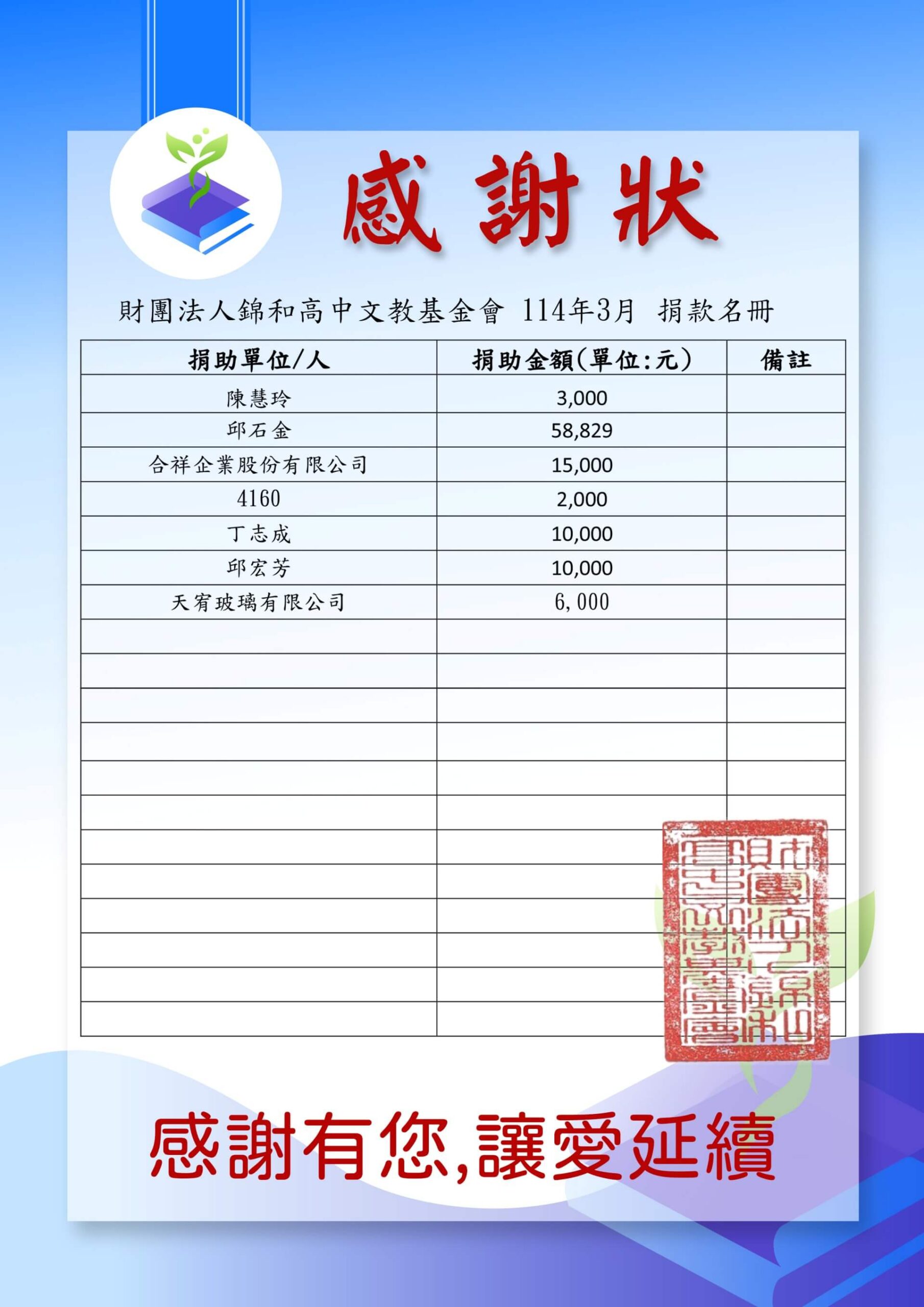 114-3月捐贈捐款名冊