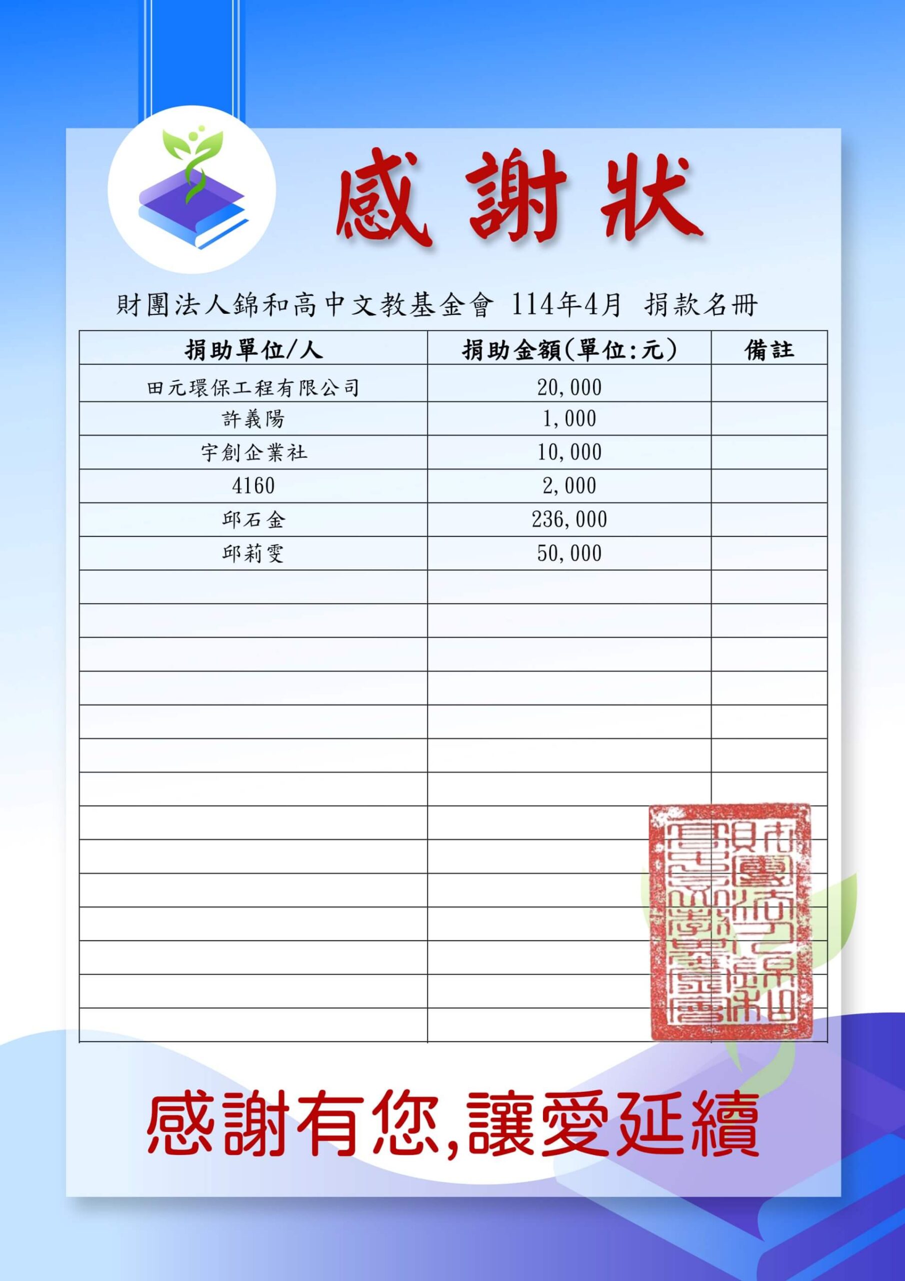 114-4月捐贈捐款名冊