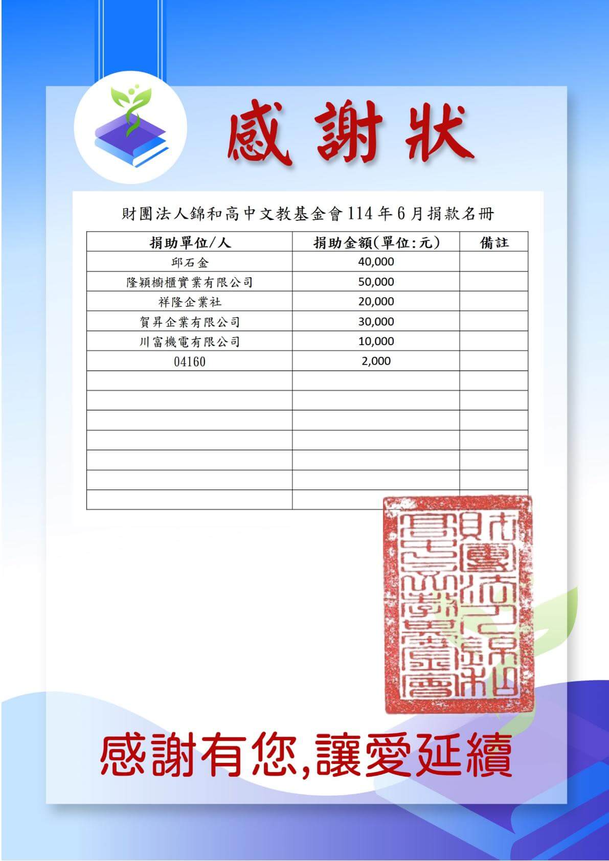 114-6月捐贈捐款名冊