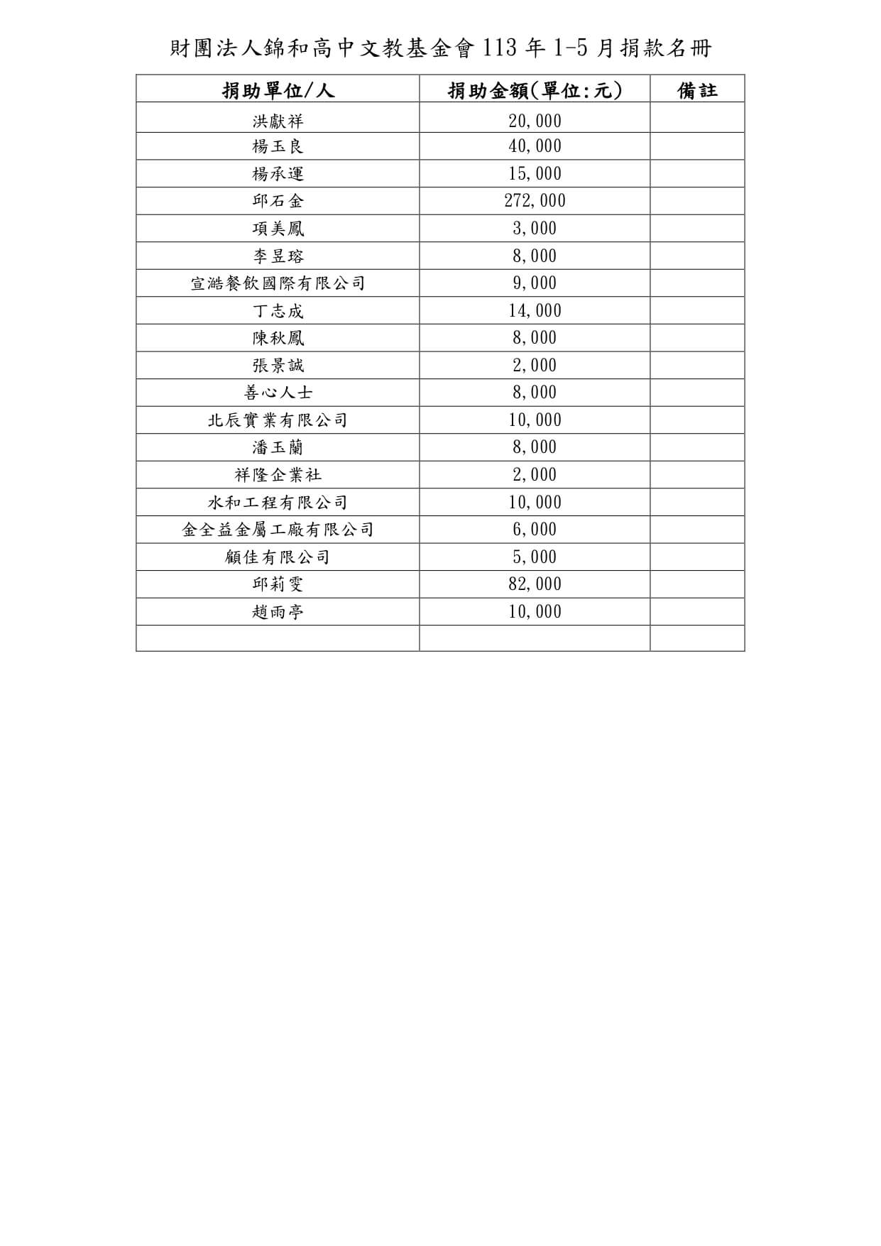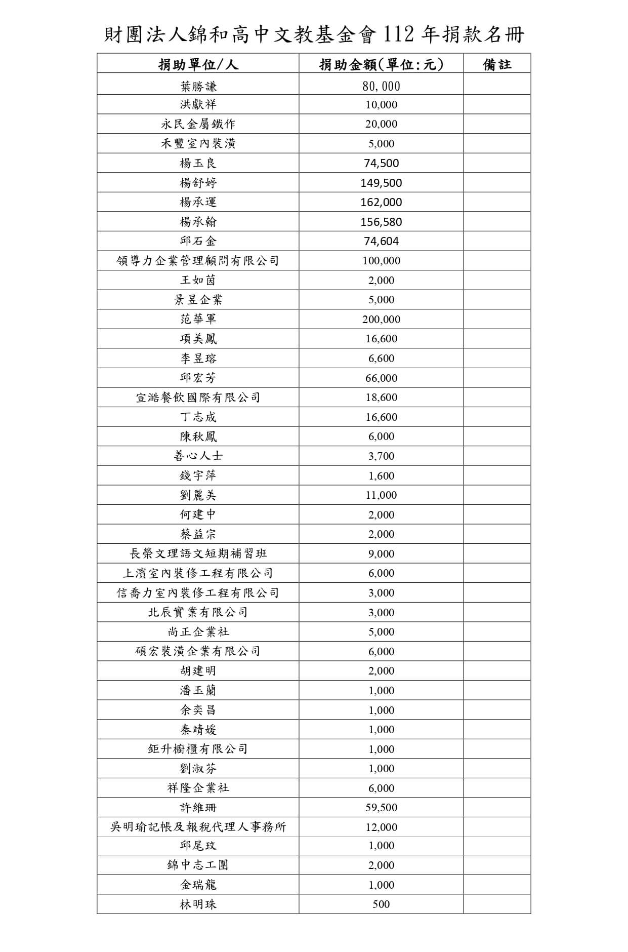 每人捐款以 2000 元為 1 單位。